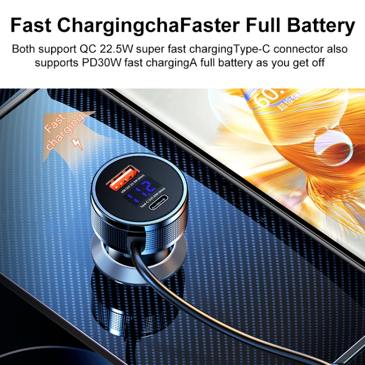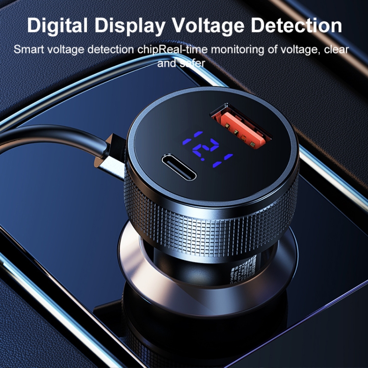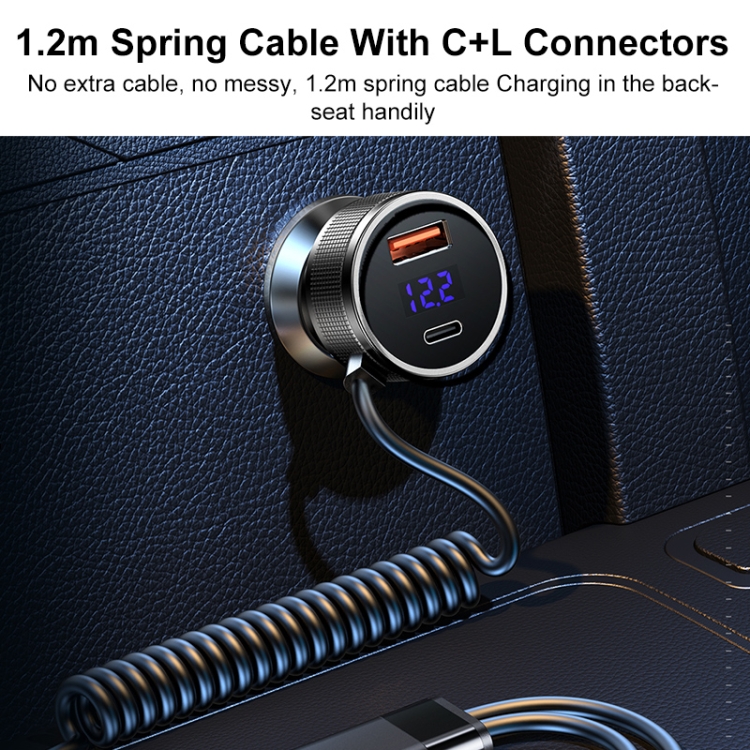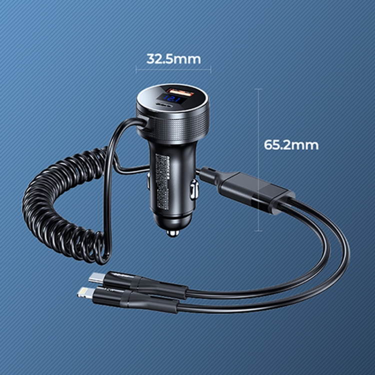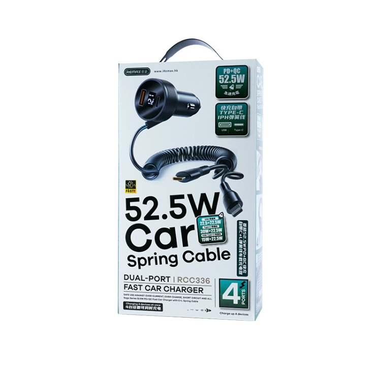 REMAX RCC336 Saga Series 2 in 1 Car 52.5W PD Fast Charger with USB-C / Type-C + 8 Pin Spring Cable