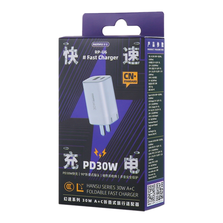 REMAX RP-U6 Magic Speed Series 30W Micro USB+USB-C / Type-C Foldable Fast Charger