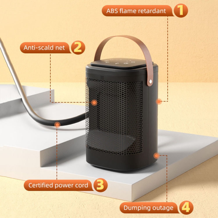 2. Features: supports remote control operation, three gears, temperature display, PTC heating, flame-retardant ABS material, touch buttons