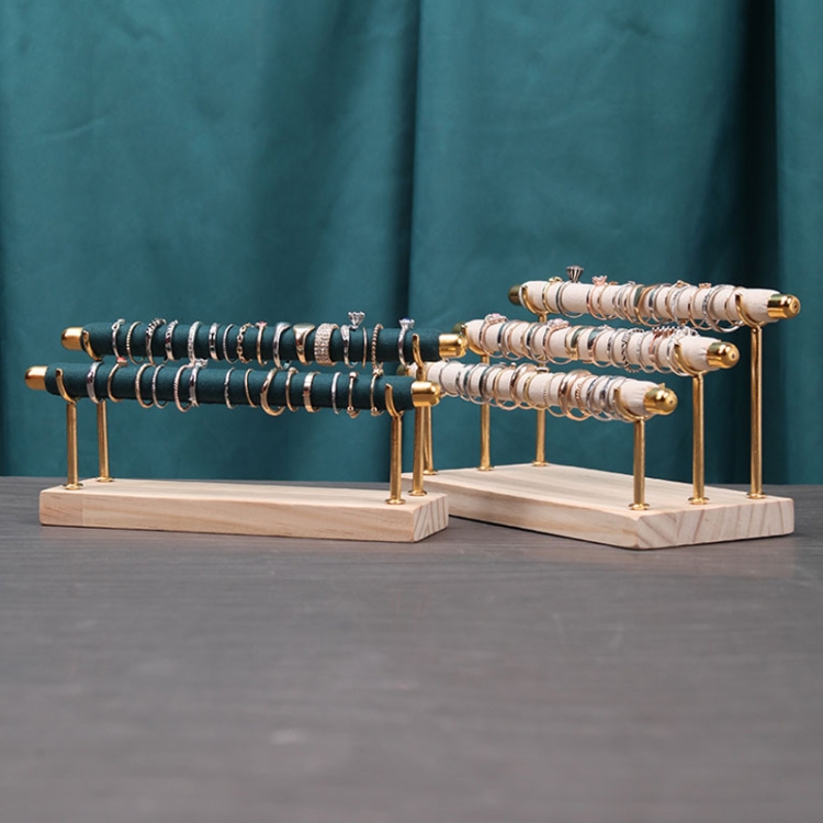 Removable Solid Wooden Base Ring Display Metal Stand Sponge Bar Ring Storage Rack