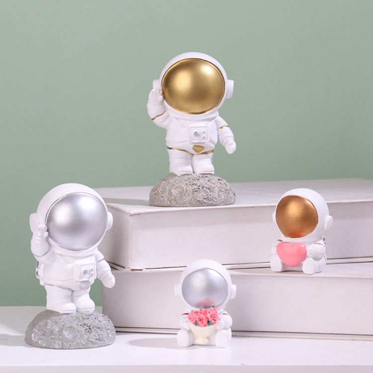 Resin Crafts Space Astronaut Ornaments Home Office Desktop Ornaments Children Gift, Style: Sitting With Heart Gold