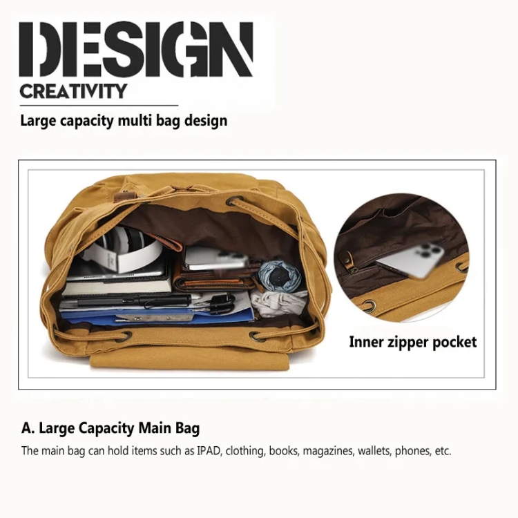 1. Retro and casual style design, integrating classical fashion and creative design, using environmentally friendly canvas material to create different textures and color effects.