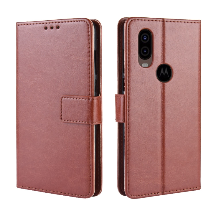 Retro Crazy Horse Texture Horizontal Flip Leather Case for Motorola One Vision , with Holder & Card Slots & Photo Frame