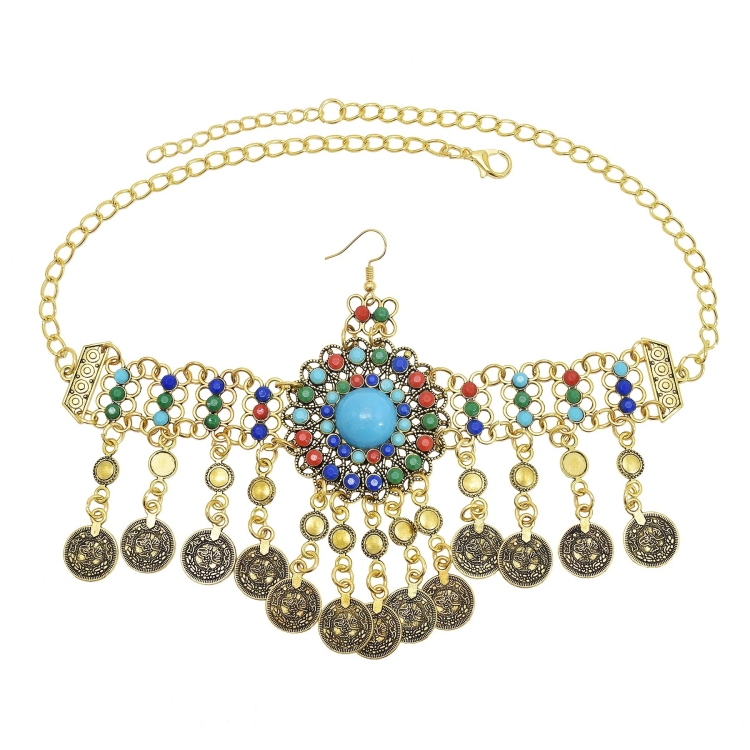 Retro Headdress Personalized Tassel Coin Colored Beads Hair Band