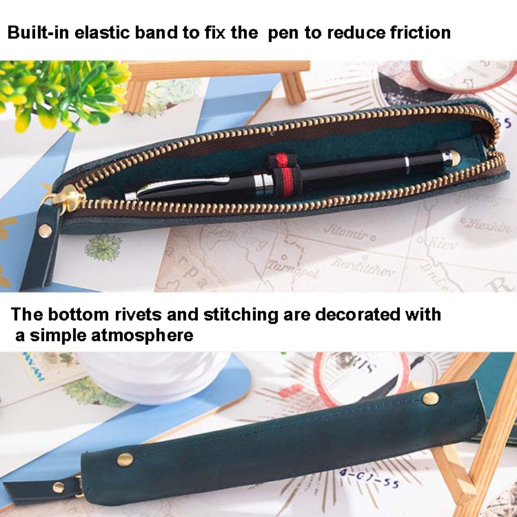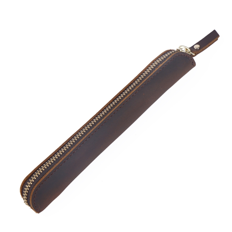Retro Simple Leather Stylus Leather Zipper Pen Protection Case Crazy Horse Skin Mini Pen Case
