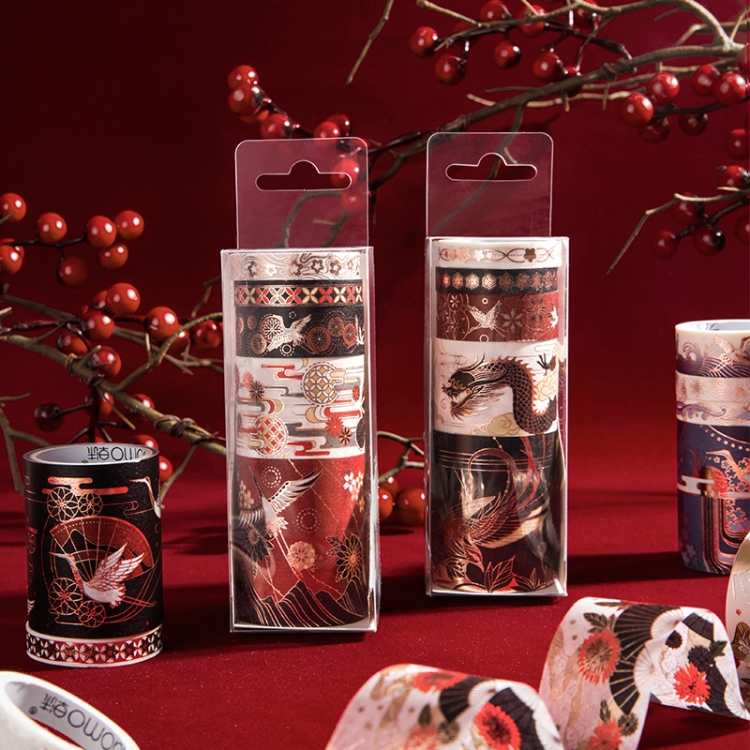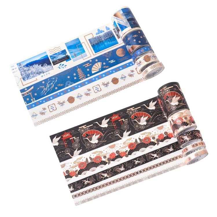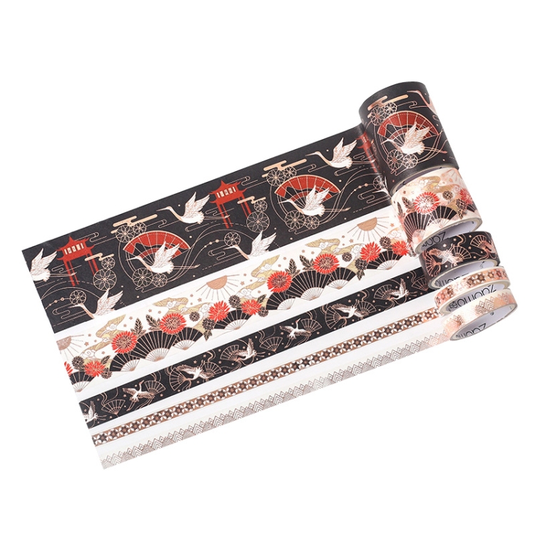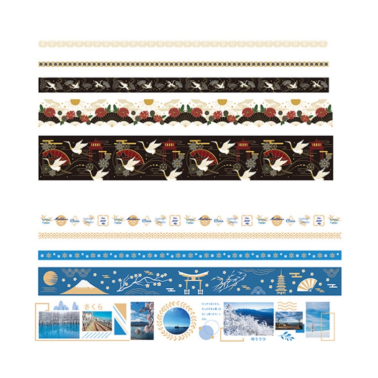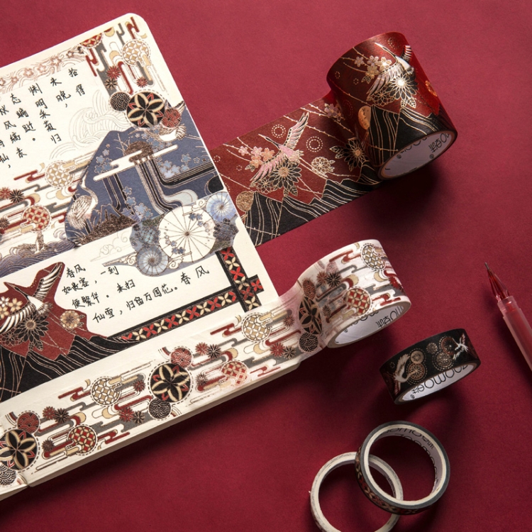 Retro Wind Hot Stamping And Paper Tape Lipstick Decorative Tape Hand Account Tape, Flying Crane Black Bottom, Tokyo and Wind