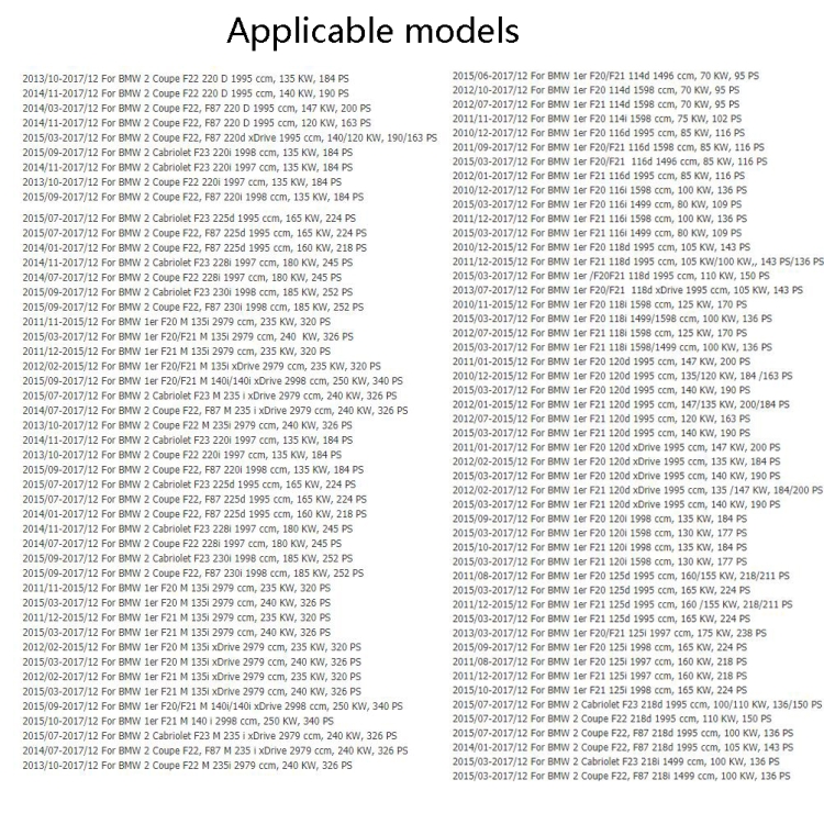 | Model | For Audi / Golf / Jetta, For BMW X3/X5/E90, For BMW F20 / F21, For BMW F30 / F22 / F20, For Mercedes-Benz CLK 200 2002-2014, For Mercedes-Benz C230 /C240 |