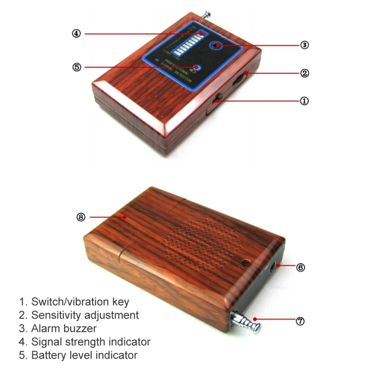 1) Can effectively detect wireless pinhole camera, monitor, track, and cell phone signals GPS blocking devices and other wireless devices