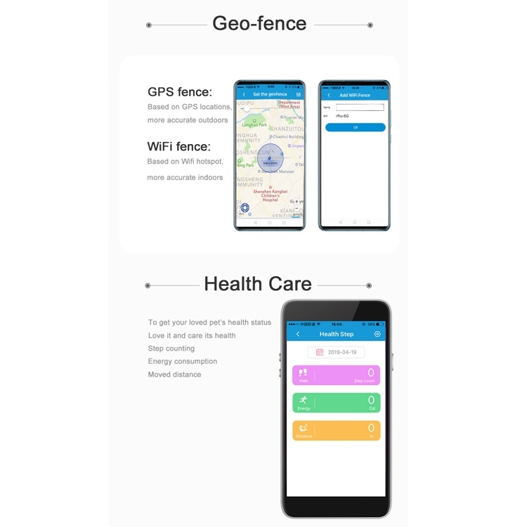 2. Special functions: Sensor lights, step counting, finding pet alarm, IP67 waterproof