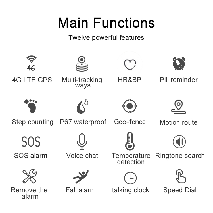 8. Other functions: real-time positioning, historical track, fence, health monitoring (heart rate, blood pressure and body temperature), calls, etc.