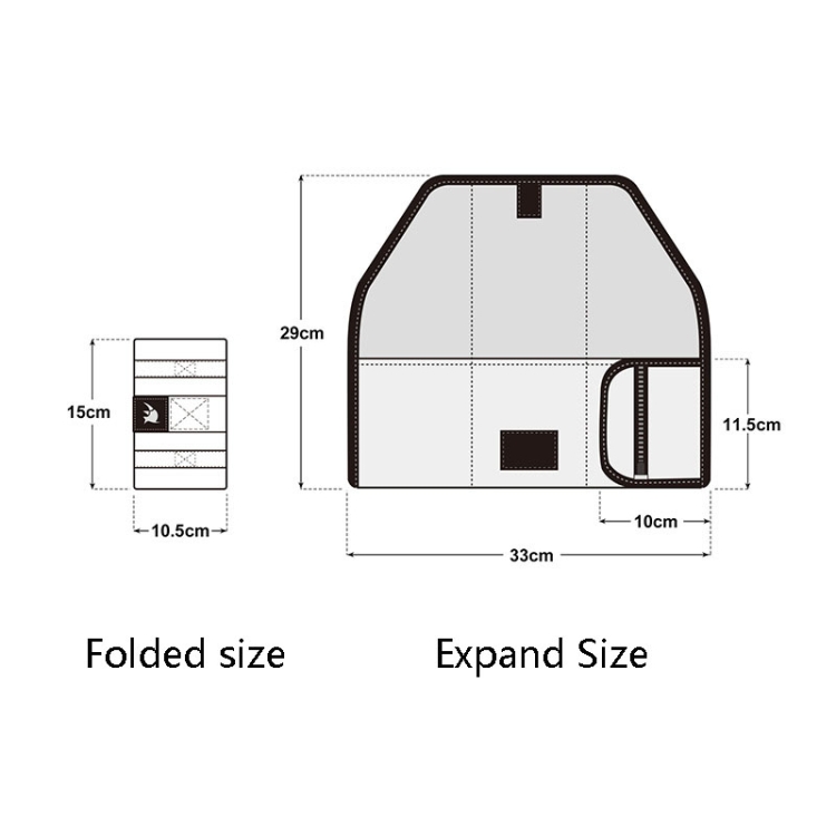 4. Dimensions: folded: 10.5 x 10.5 x 15 cm, unfolded: 33 x 29 cm