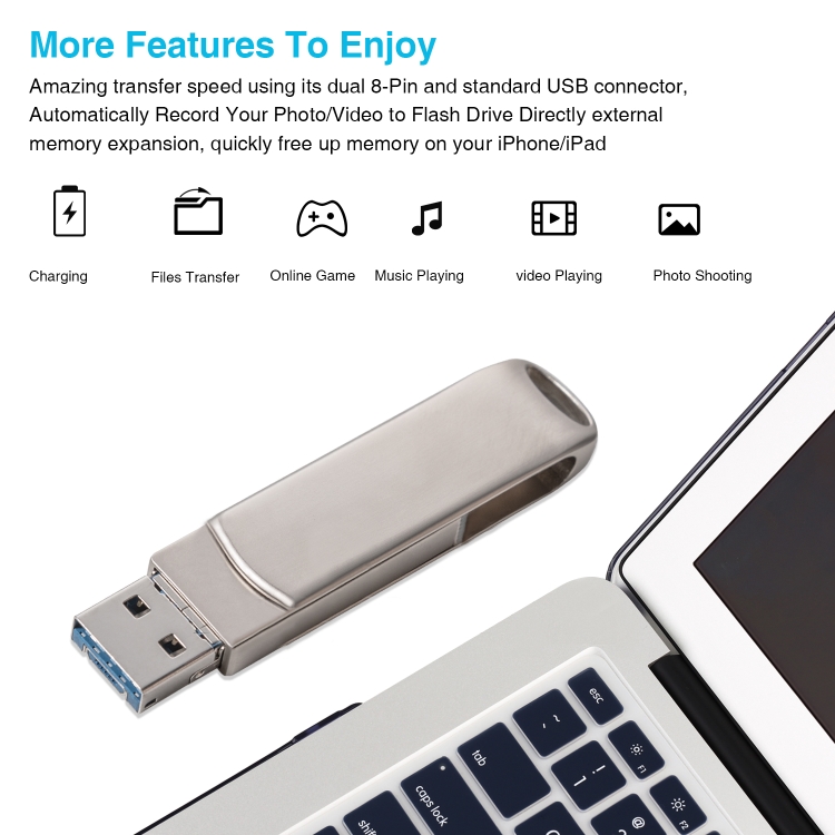 16G, 32G, 64G, 128G, 64G Micro USB + 8 Pin + Type-C