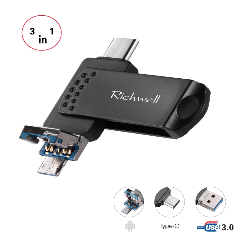 Richwell 3 in 1 32G Type-C + Micro USB + USB 3.0 Metal Flash Disk with OTG Function