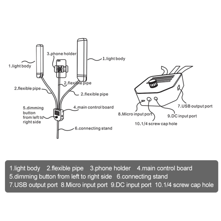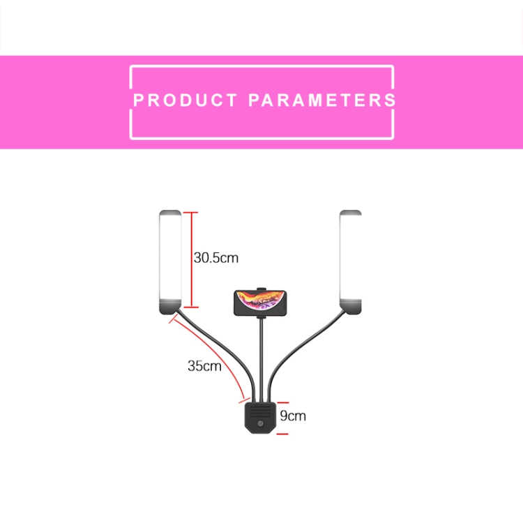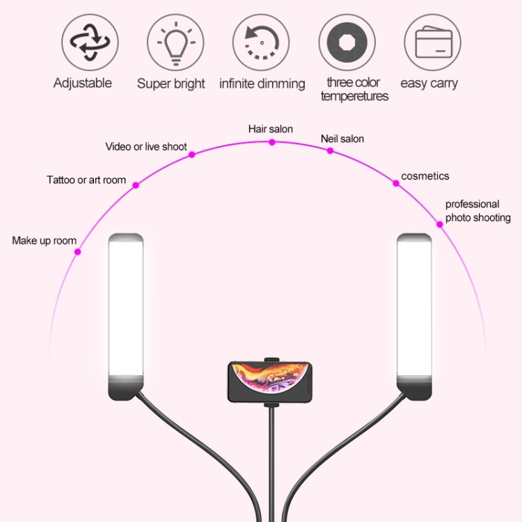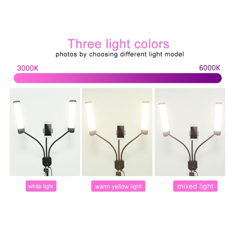 RK39 Portable Tri-color Adjustable Brightness Double Arms Fill Light with Phone Clip