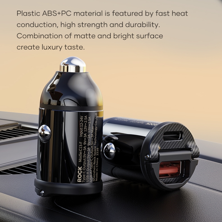 ROCK C13-F H18 Mini Portable Dual Port USB + USB-C / Type-C Car Fast Charger