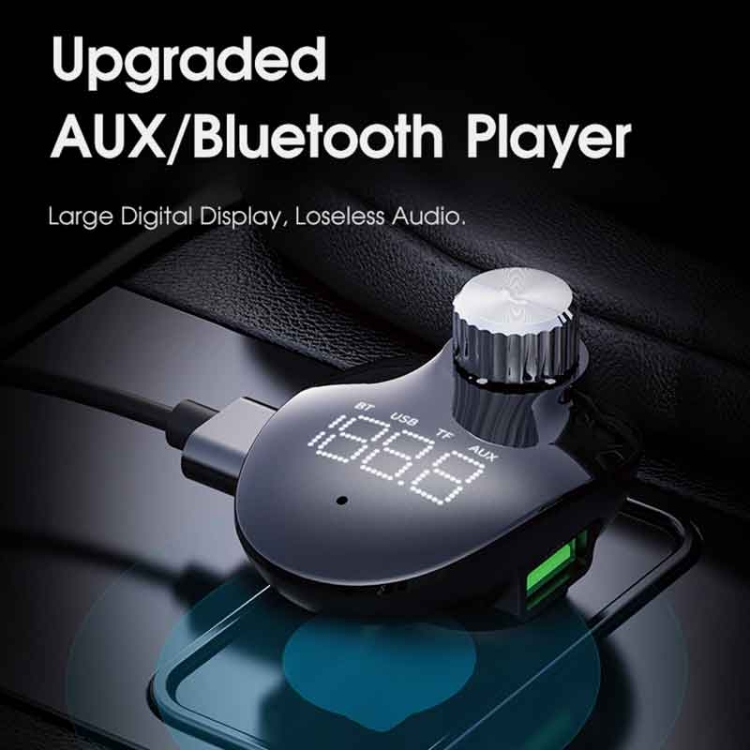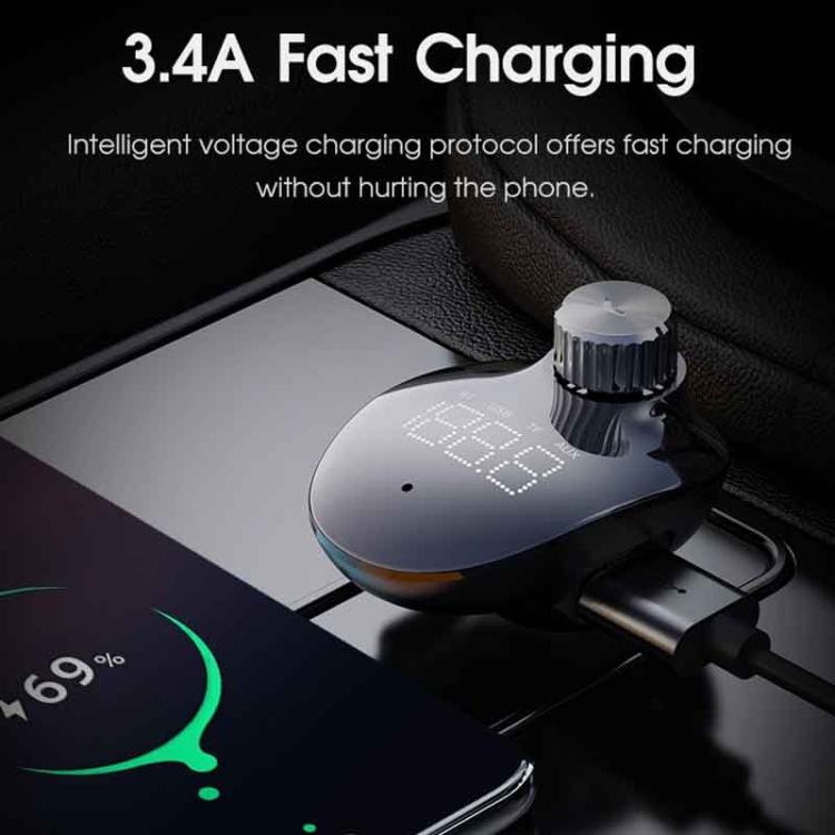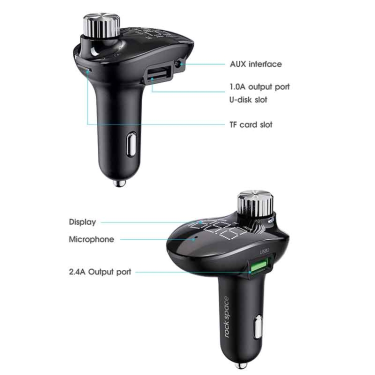 ROCK SPACE B302 18W QC3.0 Dual USB Digital Display Bluetooth Car Charger, Support 64GB U Disk & TF Card / FM / AUX / Hands-free Call
