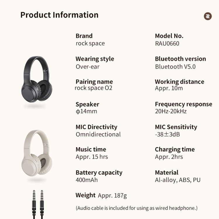 ROCK Space O2 HiFi Bluetooth 5.0 Wireless Headset with Mic, Support TF Card, Space O2