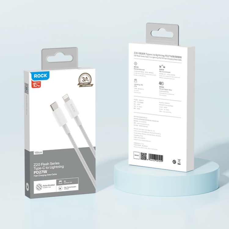 ROCK Z20 1m PD27W USB-C / Type-C to 8 Pin Fast Charging Data Cable