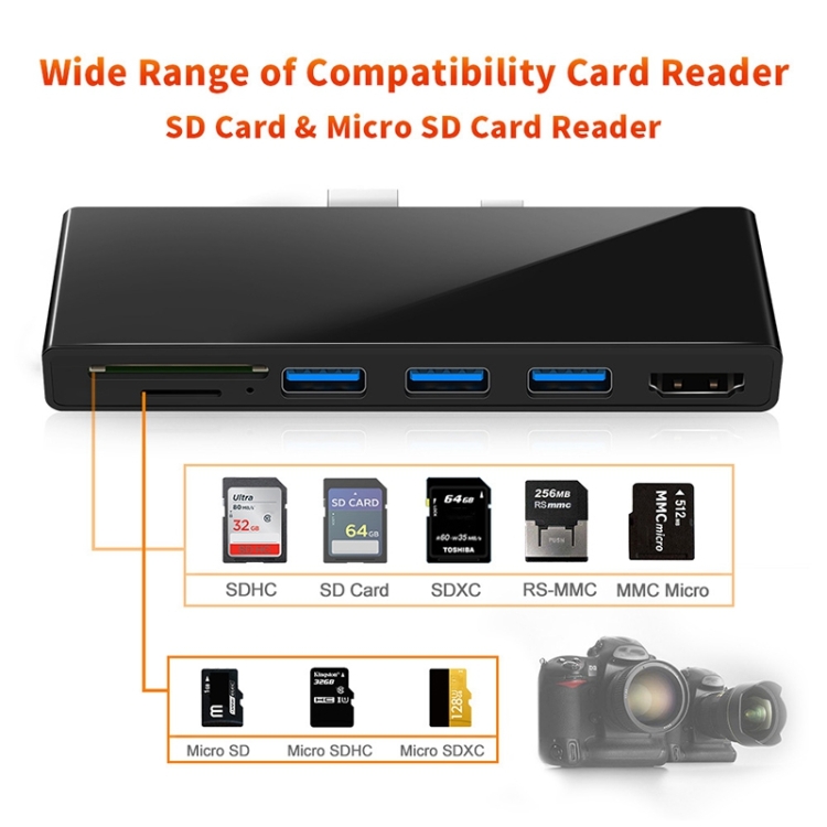 Rocketek SH768 6 in 1 USB 3.0 / HDMI / SD / TF HUB Adapter for Surface Pro 5 / 6