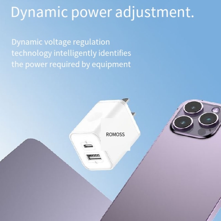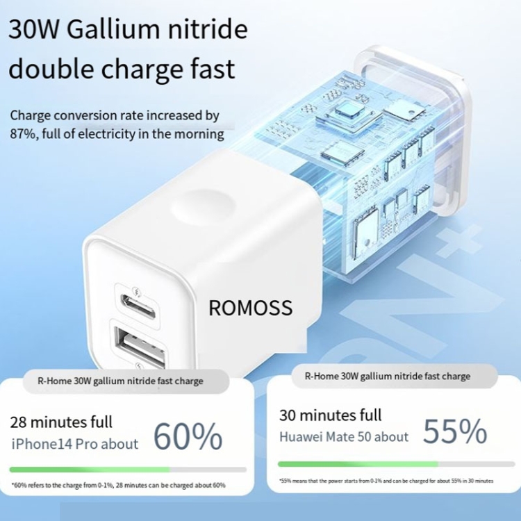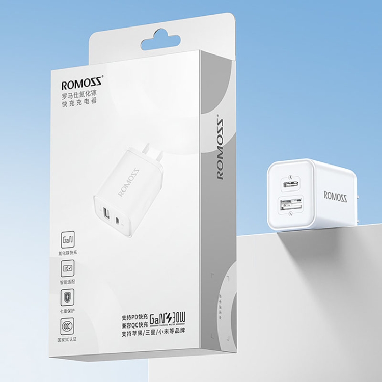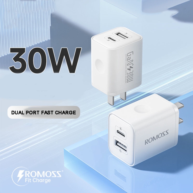 ROMOSS AC30T PD 30W Double Port Type-C/USB-C+USB-A Gallium Nitride Charger Adapter,CN Plug