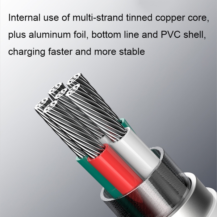6. The internal use of multi-strand tinned copper core, plus aluminum foil, bottom line and PVC shell, charging faster and more stable