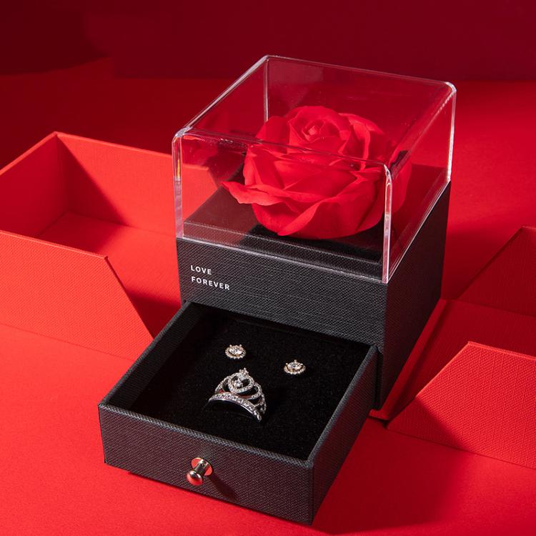 5. Forever rose double-open jewelry gift box, artisan skills, meticulous selection of materials, creating a romantic set