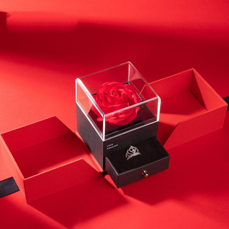 Rose Jewelry Box Double Open Ring Box Soap Flower Valentine Day Earring Necklace Jewelry Storage Case