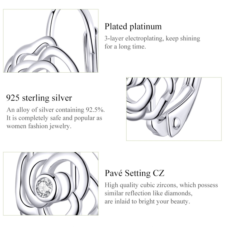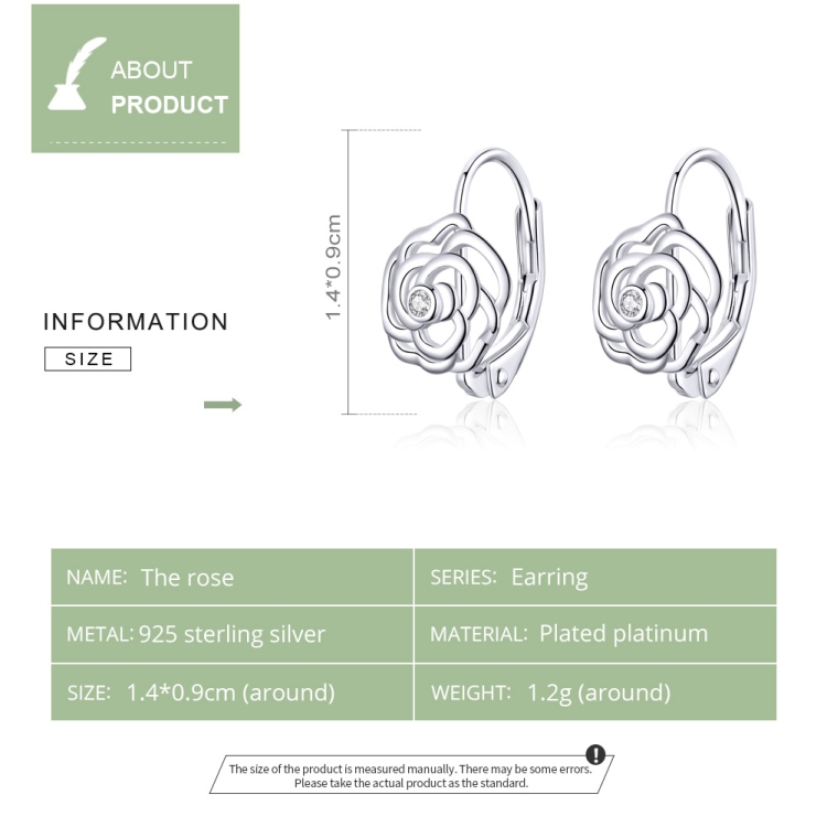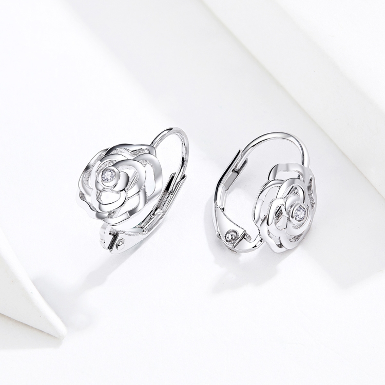 Rose Sterling Silver Platinum Plated Earrings Female Earrings