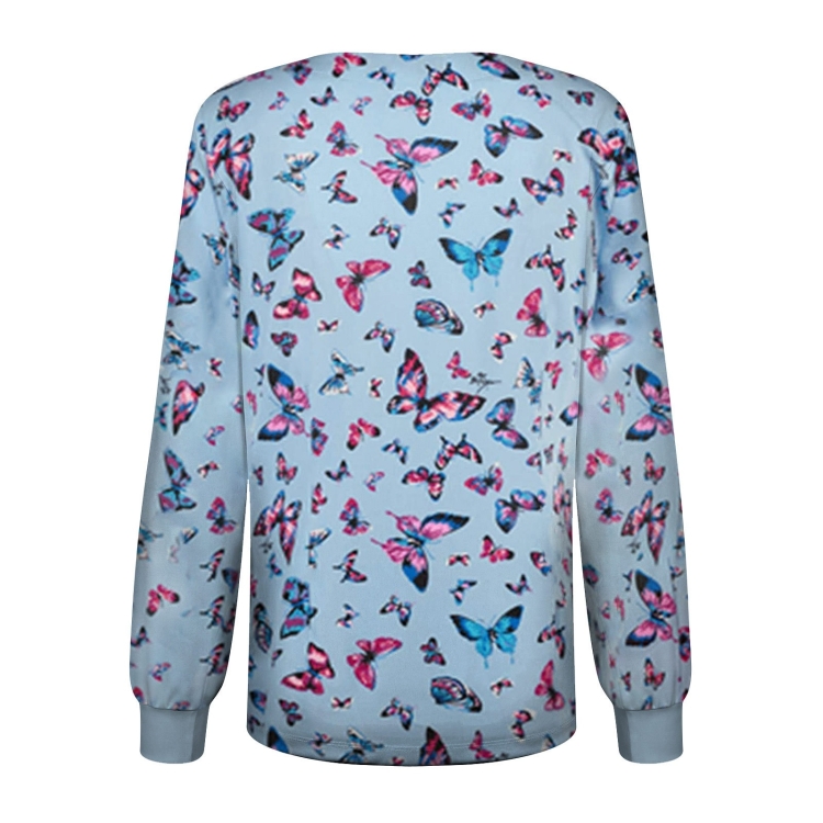 Round Neck Printed Nurse Clothes Long Sleeve Top (Color:Blue Size:XXXL)