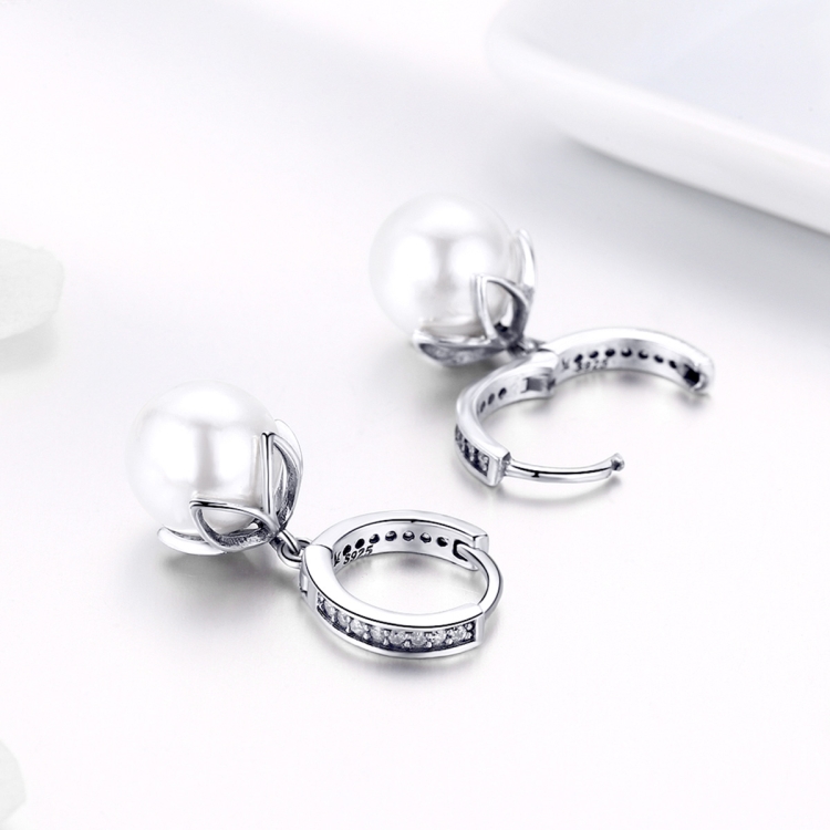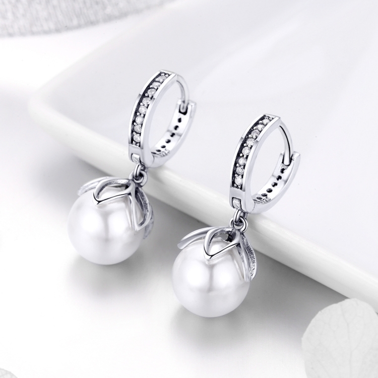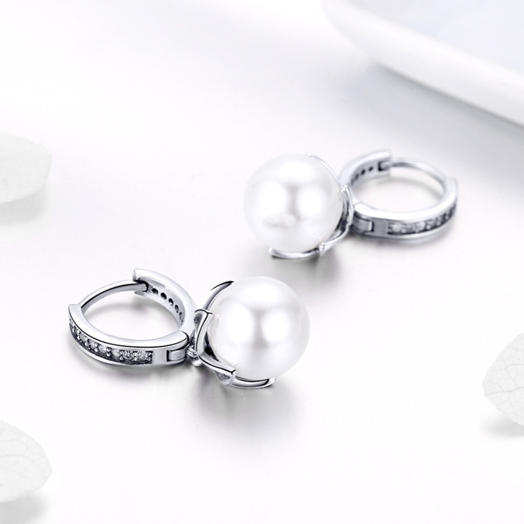 Round Shell Bead Earrings Simple Ladies Silver Earrings