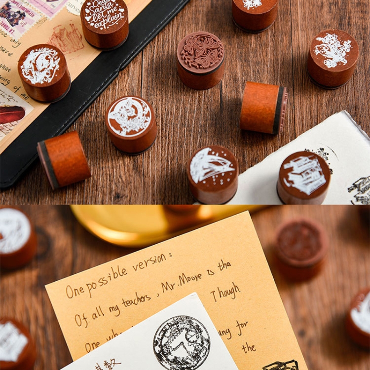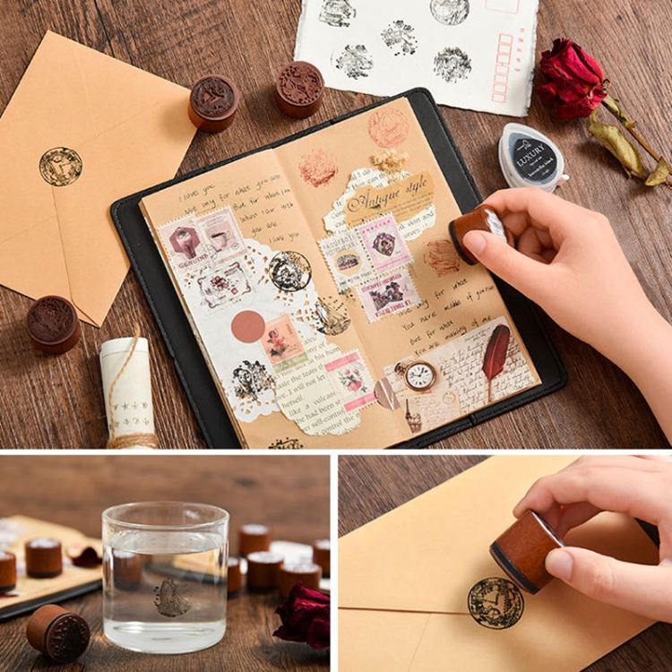 Round Wooden Stamps Vintage DIY Handbook Multifunctional Decorative Stamps