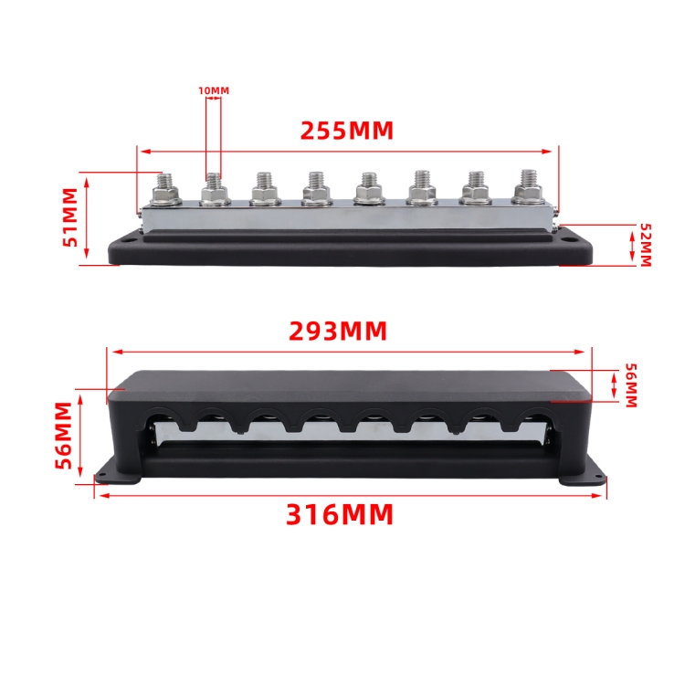 2. The bus bar has high current up to 600A, high electrical conductivity, high mechanical strength, and corrosion resistance. The battery distribution block is made of high-quality tin-plated brass and has good electrical conductivity.