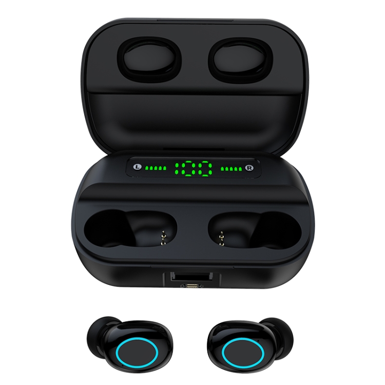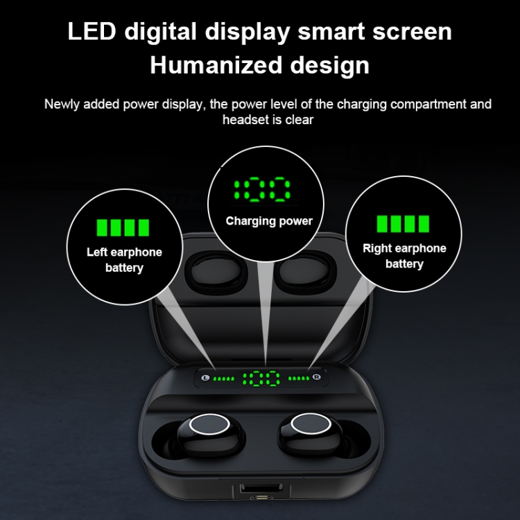4. The middle LED digital display screen displays the power of the charging box, and the left and right breathing lights respectively display the battery power of the left and right earphones.