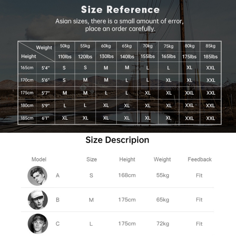 | Option | S, M, L, XL, XXL |
