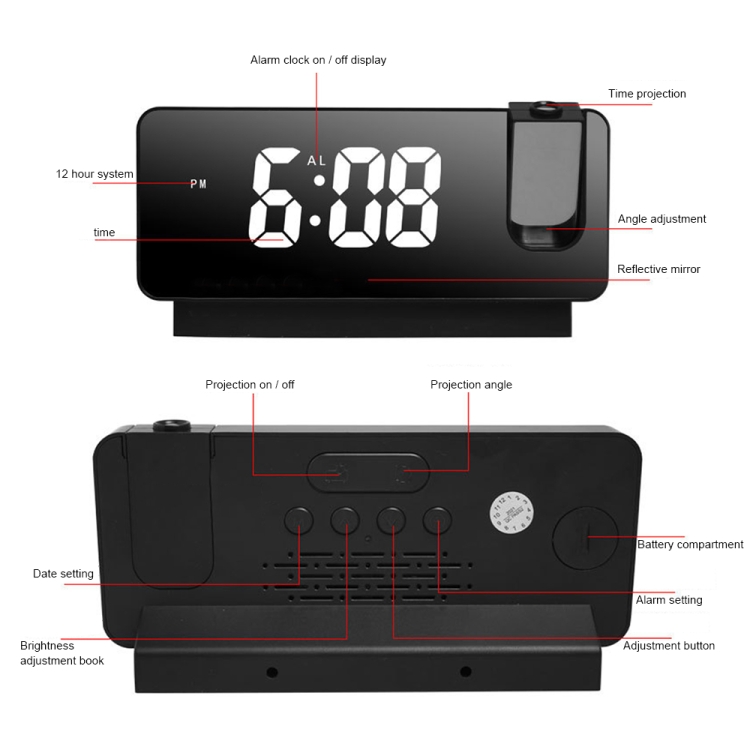 2. Function: decoration, mirror, alarm clock, projection, calendar, 24 hours indication
