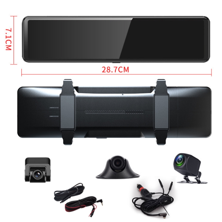 5. Functions: 3 cameras/mobile screen projection/12-inch touch/WIFI/APP viewing/parking monitoring/Bluetooth connection/navigation function/music playback/loop recording/gravity sensing/170-degree wide-angle