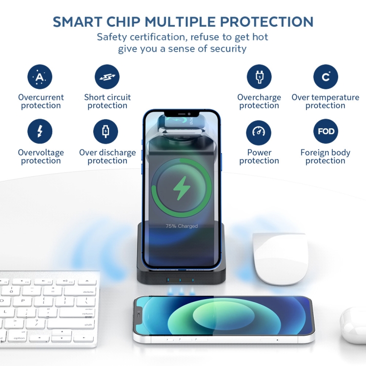 S6 3 In 1 Multi-function Magnetic Wireless Charger Stand for iPhone & iWatch & AirPods