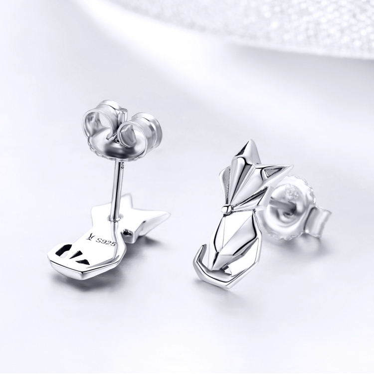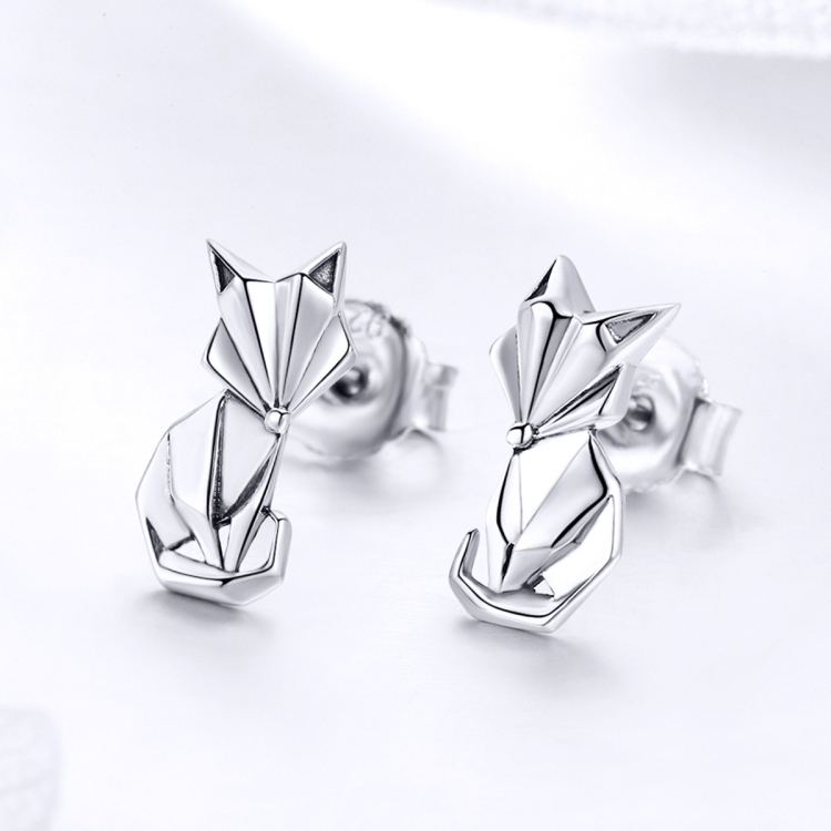 S925 Animal Earrings Jewelry Origami Fox Sterling Silver Girls Earrings