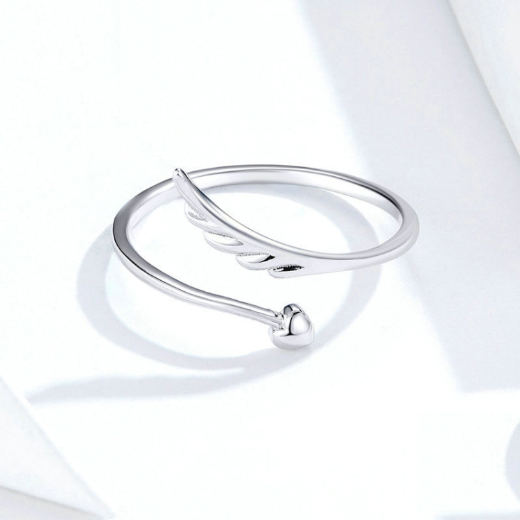 S925 Sterling Silver Angel Wings Open Ring White Gold Plated Open Ring