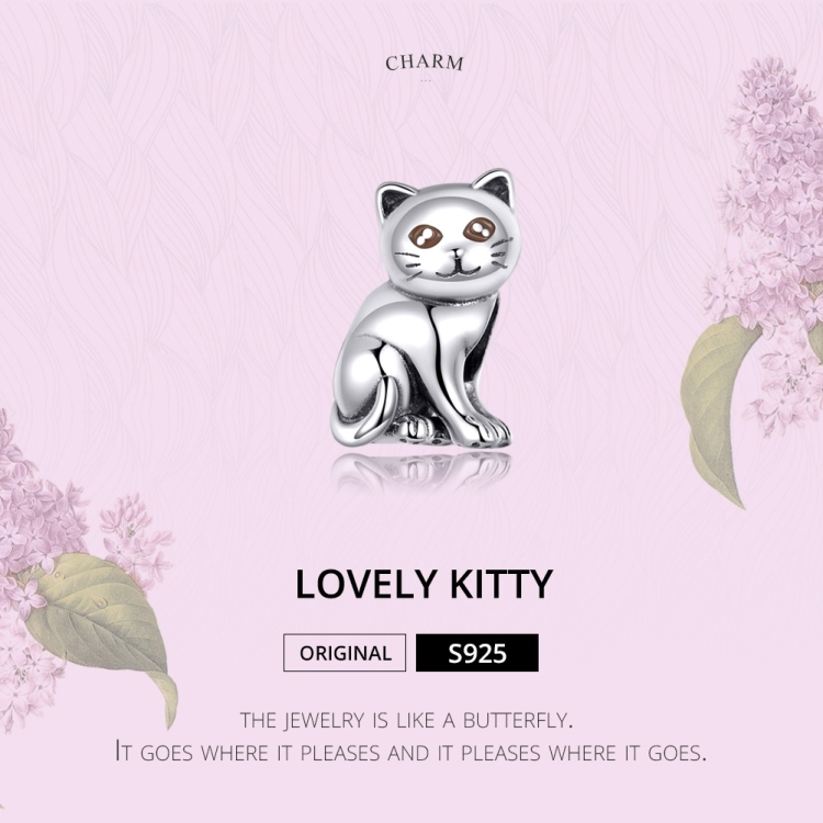 S925 Sterling Silver Animal Series Cute Cat Loose Beads DIY Bracelet Beaded