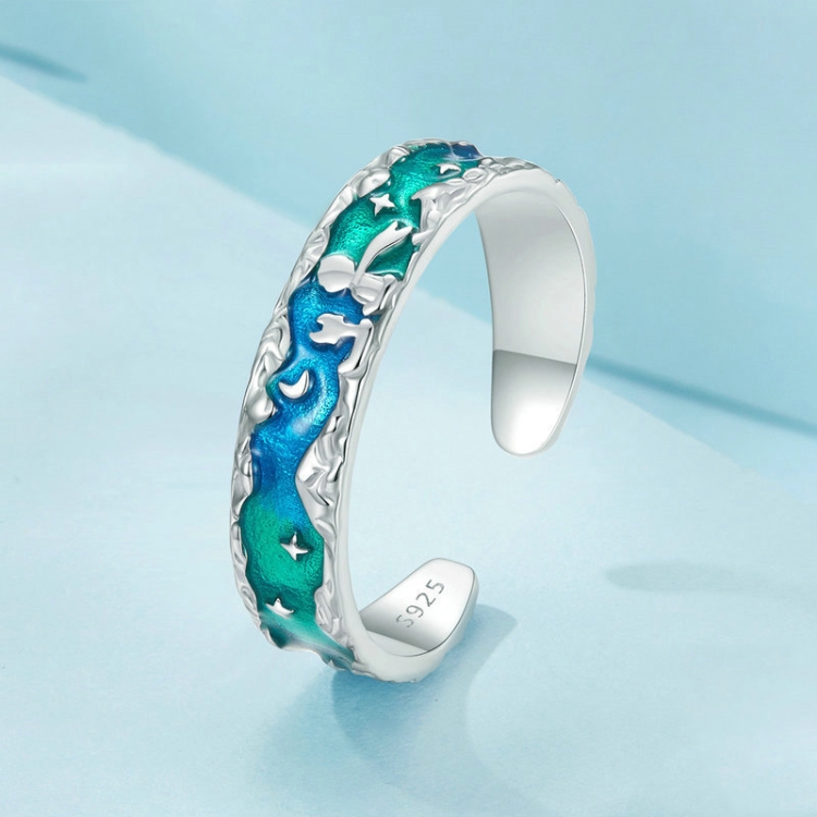 S925 Sterling Silver Aurora Star Little Prince Fox Open Ring