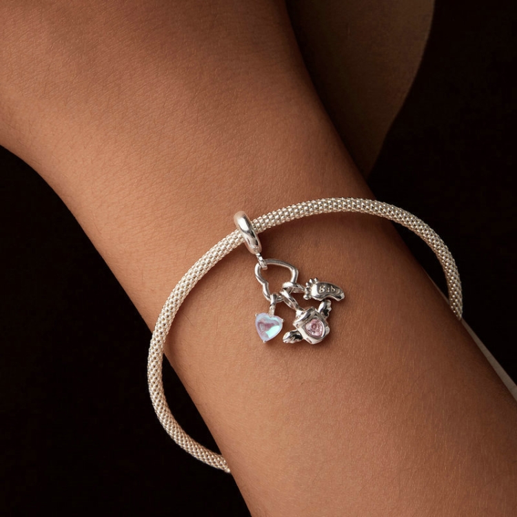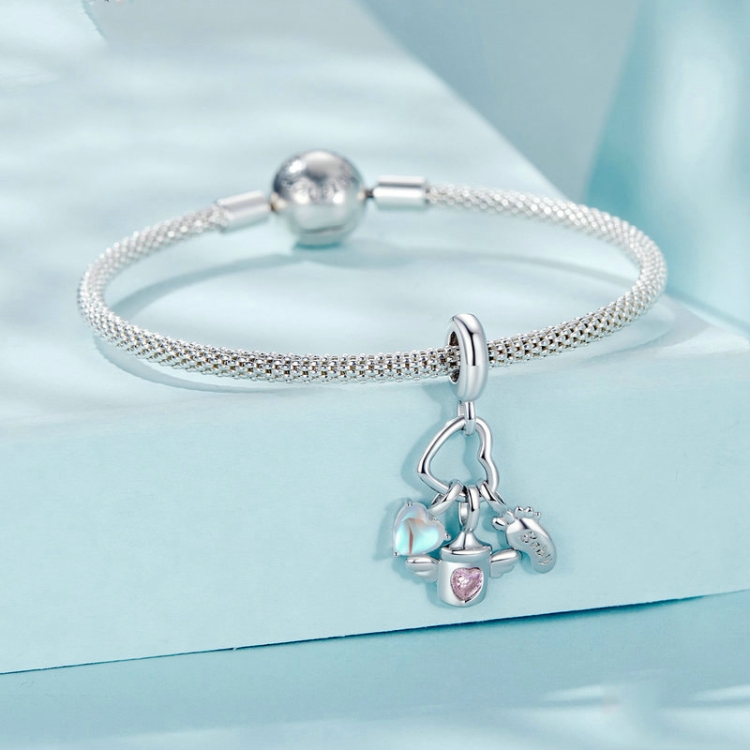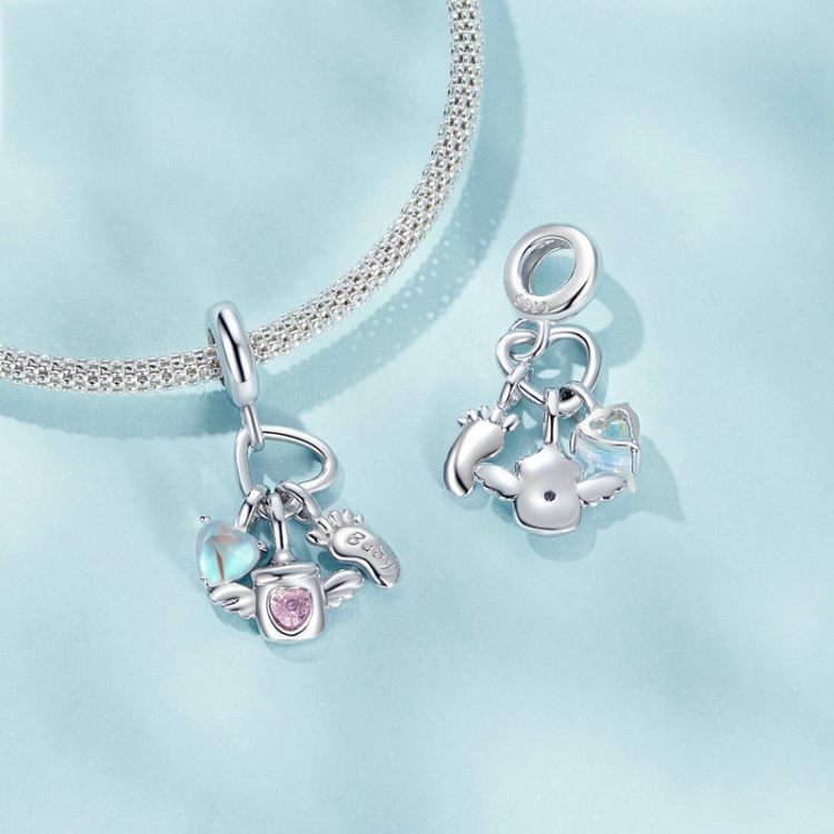 S925 Sterling Silver Baby Bottle Footprint DIY Pendant