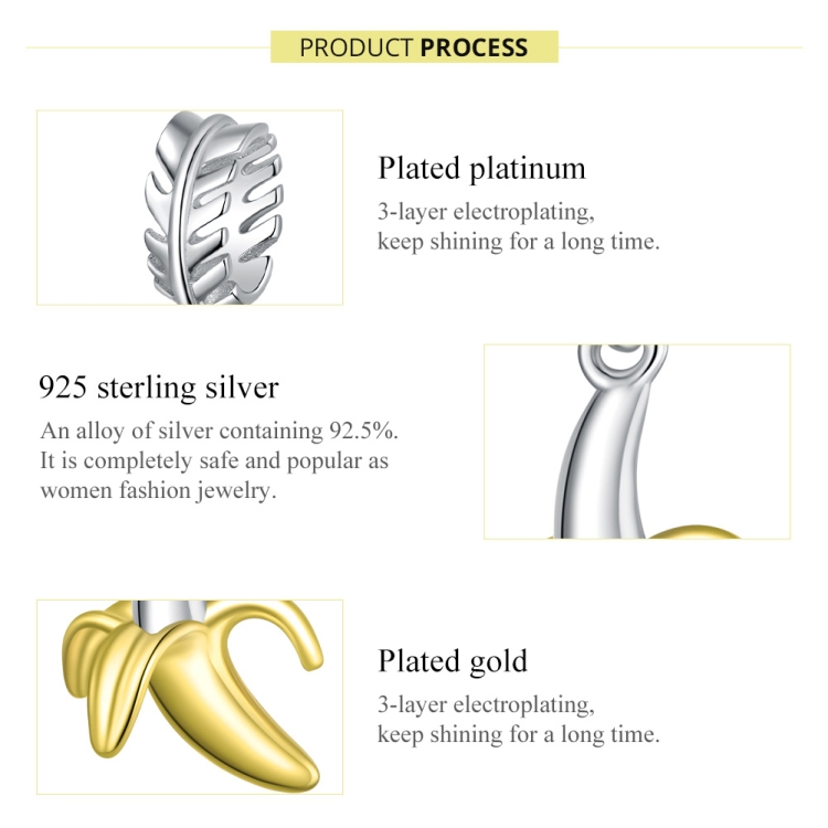 S925 Sterling Silver Banana Fruit Pendant DIY Bracelet Necklace Accessories