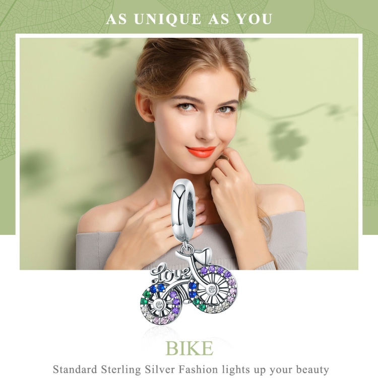 S925 Sterling Silver Bicycle Pendant Color Inlaid Zircon Beads DIY Bracelet Charm Accessories