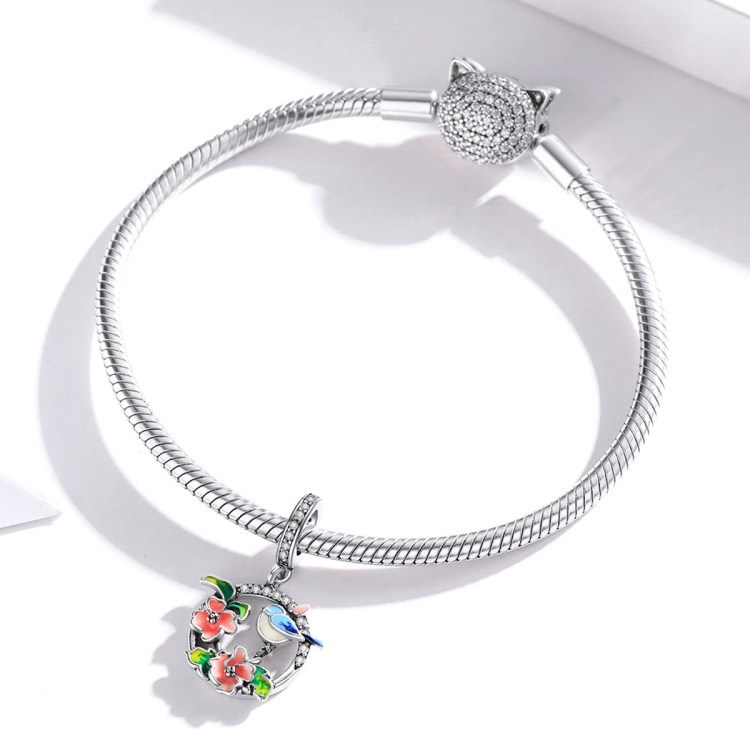 S925 Sterling Silver Birds Flowers Pendant DIY Bracelet Necklace Accessories