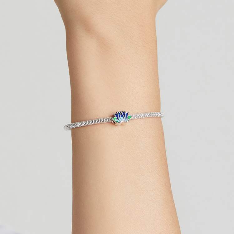S925 Sterling Silver Blue Lotus Beads DIY Bracelet Necklace Accessories