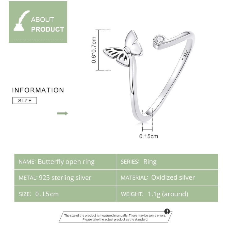 7. Ring width: 0.15cm, butterfly height and width: 0.6×0.7cm