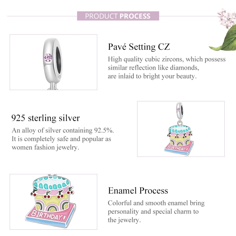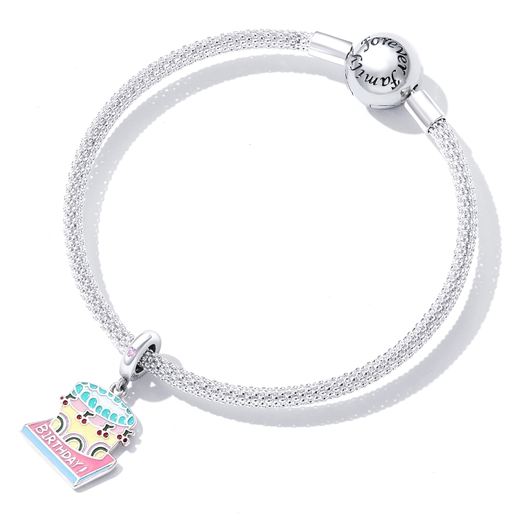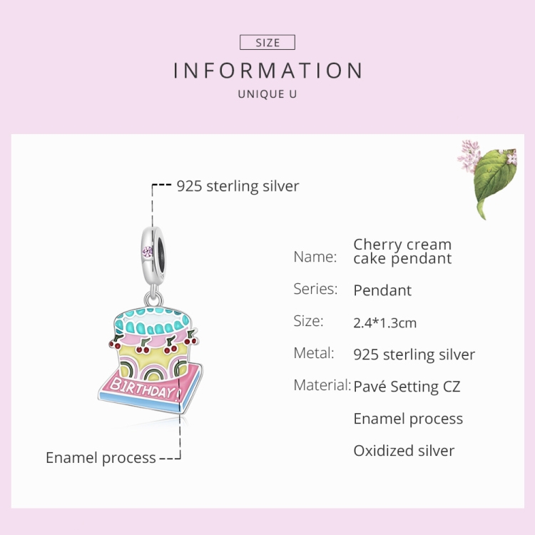 S925 Sterling Silver Cherry Cream Cake Pendant DIY Bracelet Necklace Accessories