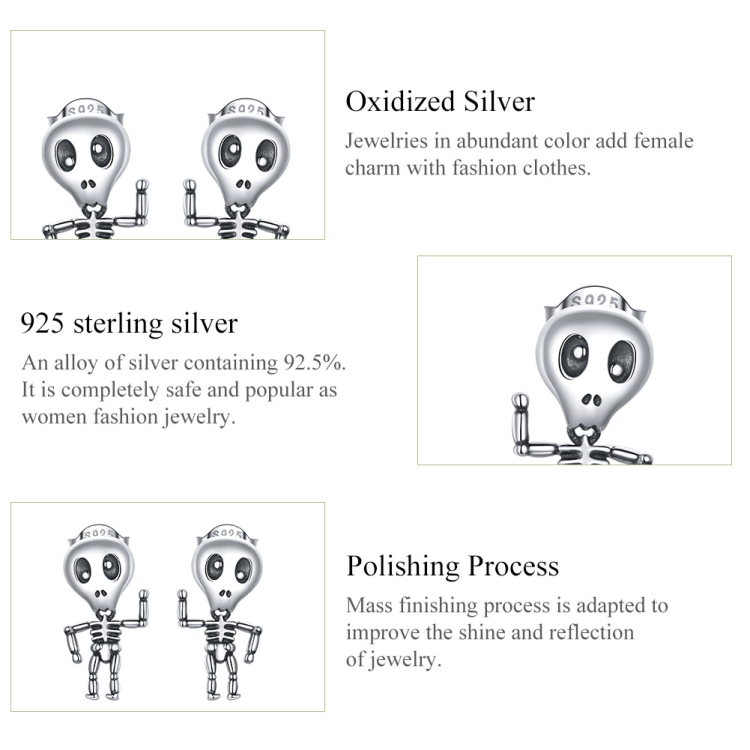 S925 Sterling Silver Cool Skeleton Man Ear Studs Women Earrings