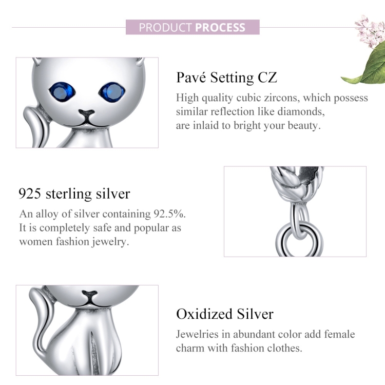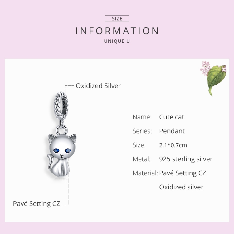 S925 Sterling Silver Cute Cat Pendant DIY Bracelet Necklace Accessories